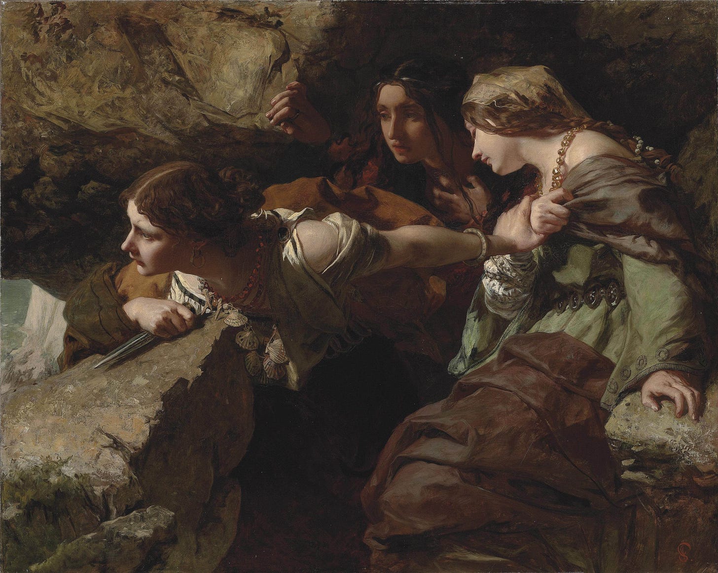 James Sant’s painting “Courage, Anxiety and Despair: Watching the Battle“ portrays courage as the catalyst that transmutes fear into resolve. The female figures in twilight hide on a ridge, scanning the distant violent clash, while witnessing rather than fleeing. The posture of the female holding a dagger in the forefront captures Mars’s invitation to us to learn to stand in the tension of the opposites between anxiety and despair, and allow courage to decide to engage and transform both into purposeful resolve.